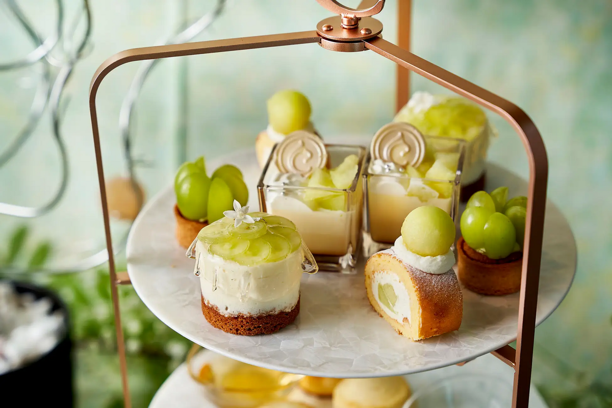 【センタラグランドホテル大阪】シャインマスカット&メロンのアフタヌーンティー。果実の美味しさを味わえるロールケーキやプリンなど