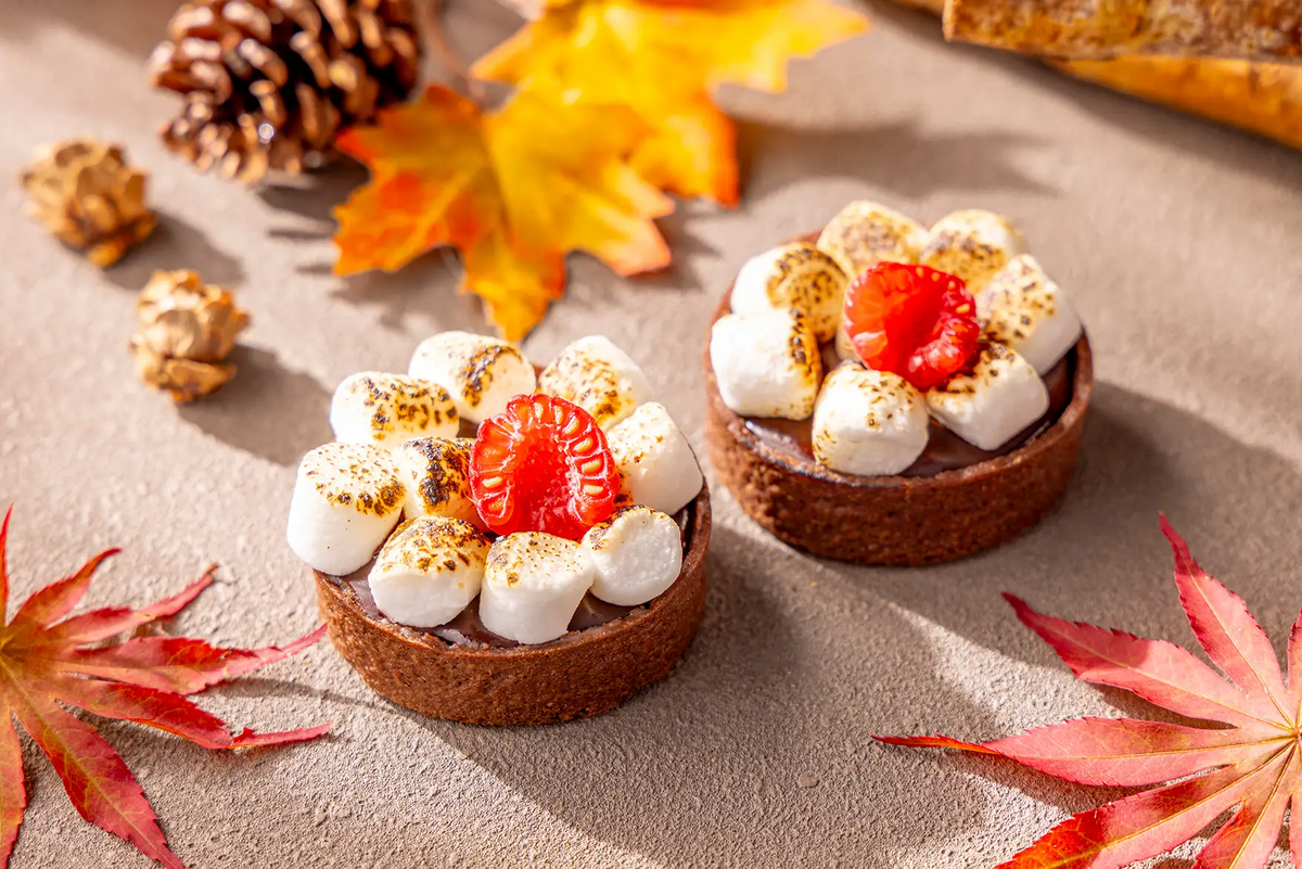 秋色が目を引くおしゃれなスイーツが並びます。