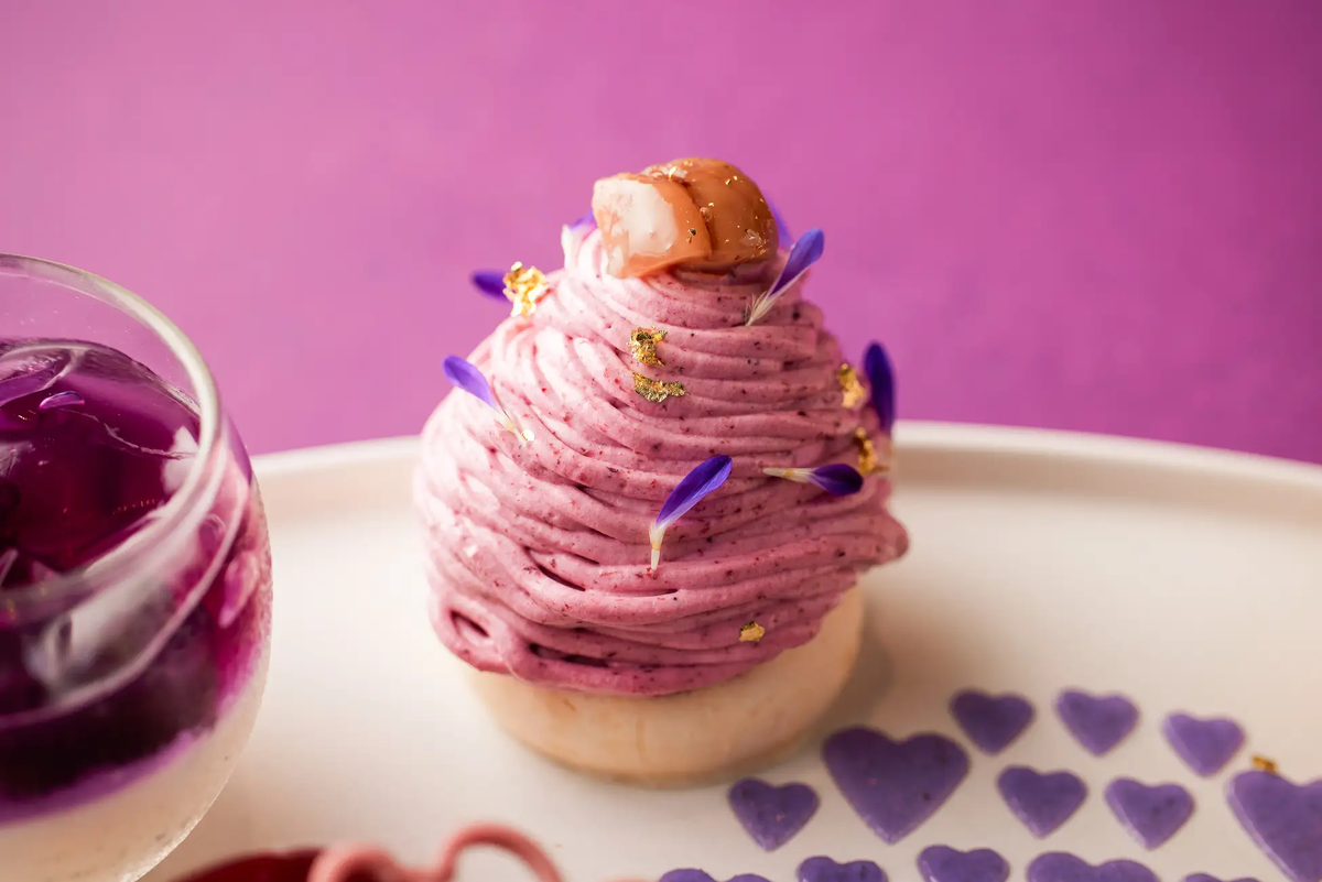 グルテンフリーの方でも楽しめる、美しい紫色に包まれた上品なアフタヌーンティーとなっています。