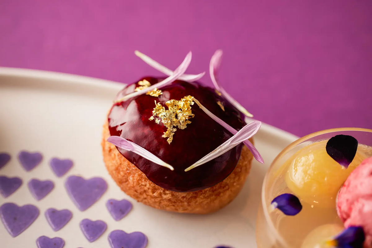 【ハイアット セントリック 銀座 東京】紫色のグルテンフリーアフタヌーンティー。癒しと彩りの恵みに包まれたパンナコッタやムースなど