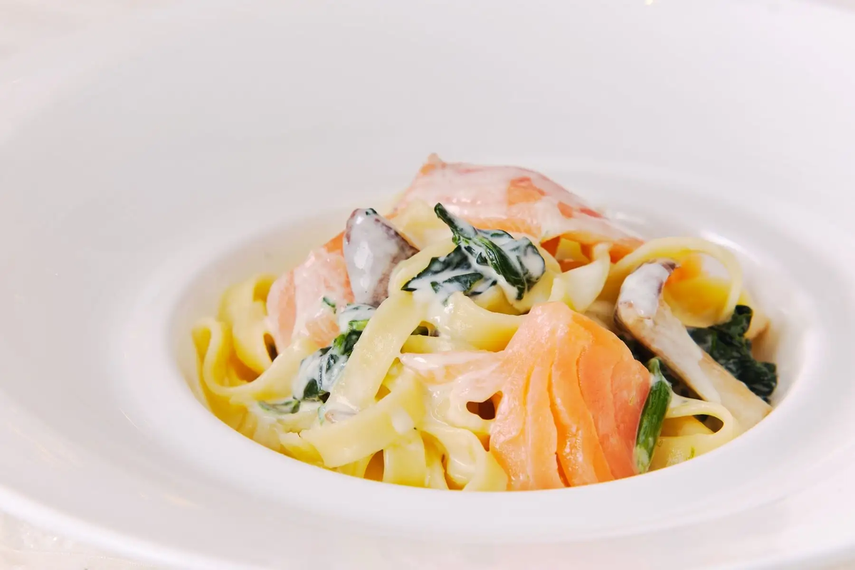 ■パスタランチ(スモークサーモンと茸のクリームパスタ/